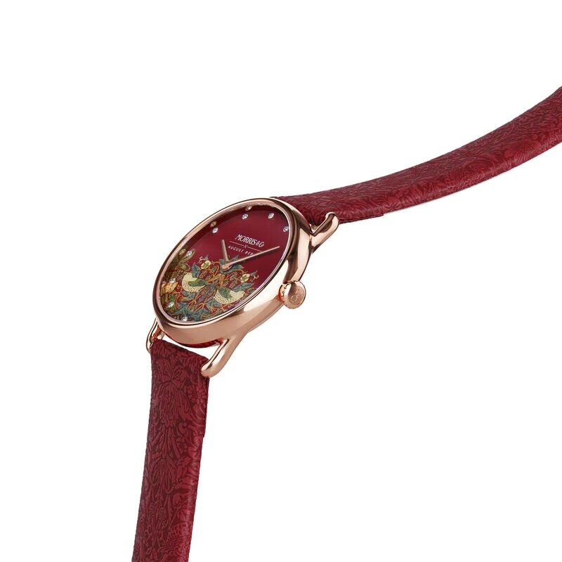 The iconic Strawberry Thief 3D dial is elevated by 12 flawlessly cut Czech Preciosa crystal indicators and petite Silver hands. Japanese Quartz Movement is protected by flat, crystal clear, anti-reflective, scratch-resistant sapphire glass, which completes the enchanting look of the August Berg + Morris & Co Petite collaboration.