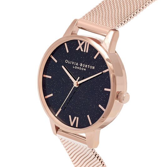 Olivia Burton Glitter Dial Mesh Rose Gold Watch
