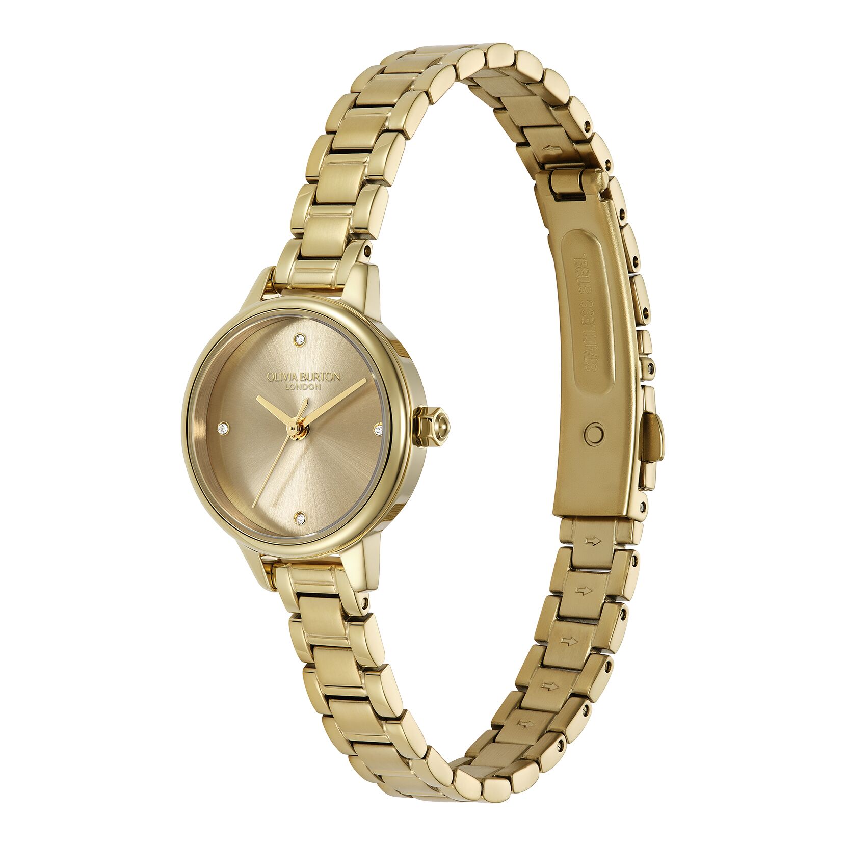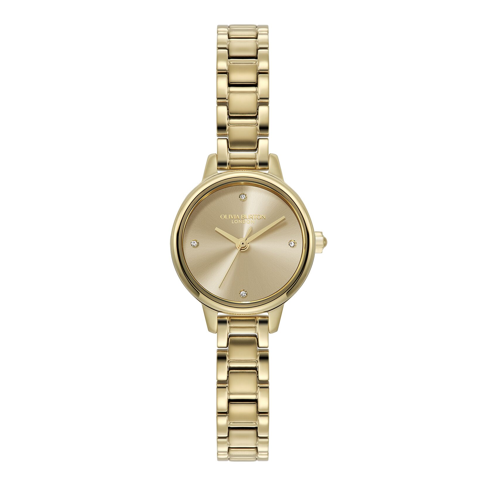 The mini watch is back and more beautiful than ever. Designed to blend modern with classic, this dainty 23mm dial is as pretty as a piece of jewellery. Its glowing sunray dial in elegant Champagne Gold is embellished with tiny crystal markers for a touch of sparkle. Finished with a beautiful gold-plated bracelet, this petite style is perfect for stacking.