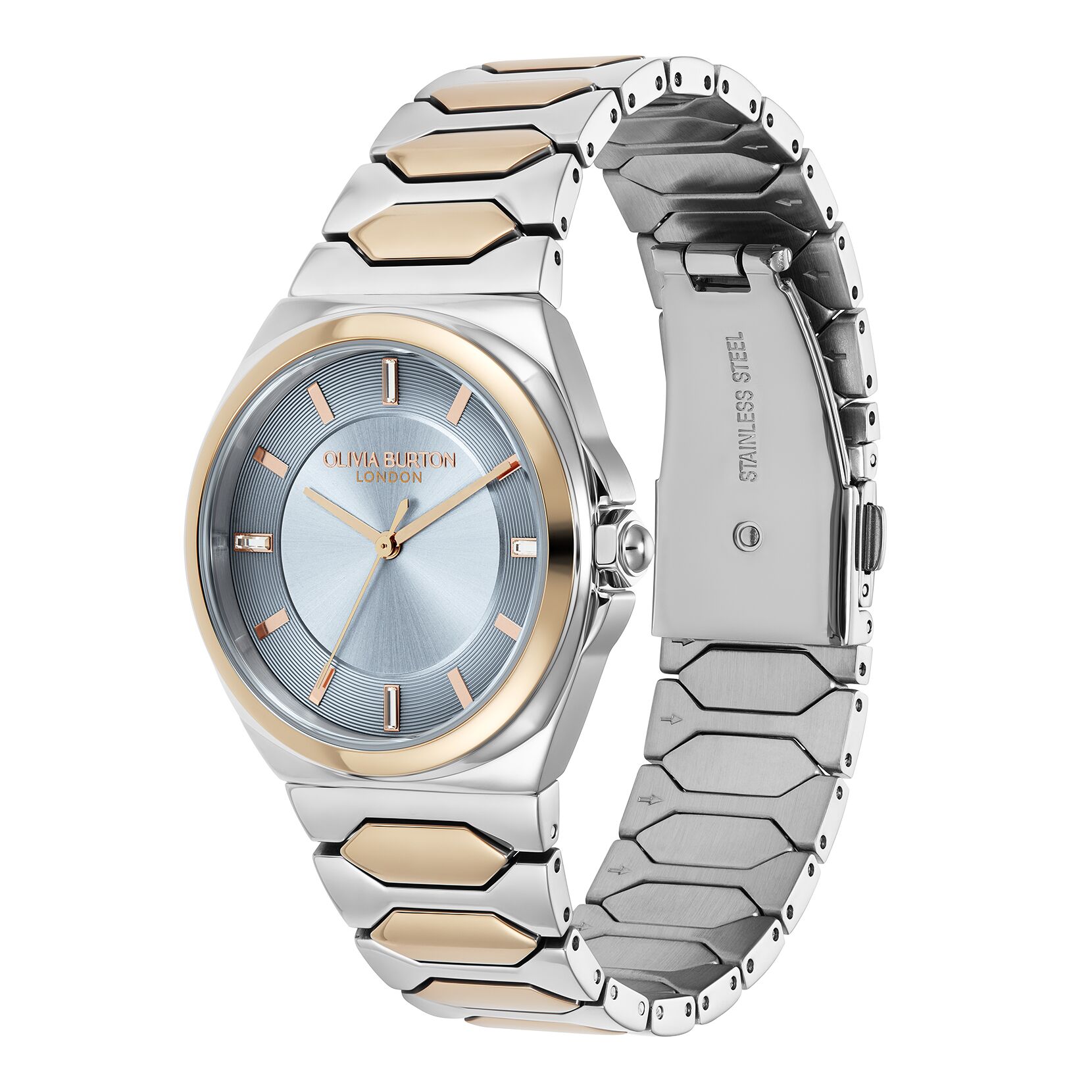 Building on the Lustre collection, these latest s tyles celebrate the dramatic beauty of the honeycomb. Hexagonal links form a sleek bracelet which blends seamlessly into an integrated sport s-inspired case. Look closely and you’ll see the dial is full of texture, showcasing contrasting soleil brushing right in the inner centre. Crystal baguette markers give an elevated feel to Champagne, Carnation and Ivory dials paired with gold, silver, rose gold or mixed metal finish bracelets. For added drama, moody Onyx and Chalk dials make a statement every time.