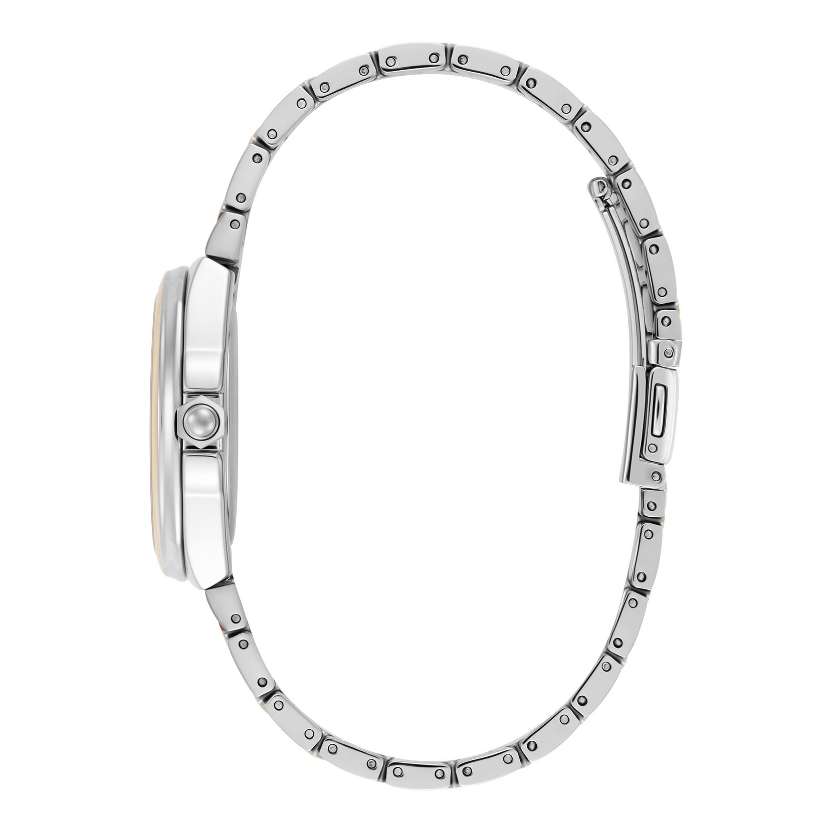 CASE MATERIAL: Ionic Plated Carnation Gold Stainless Steel with CD Textured Outer Ring