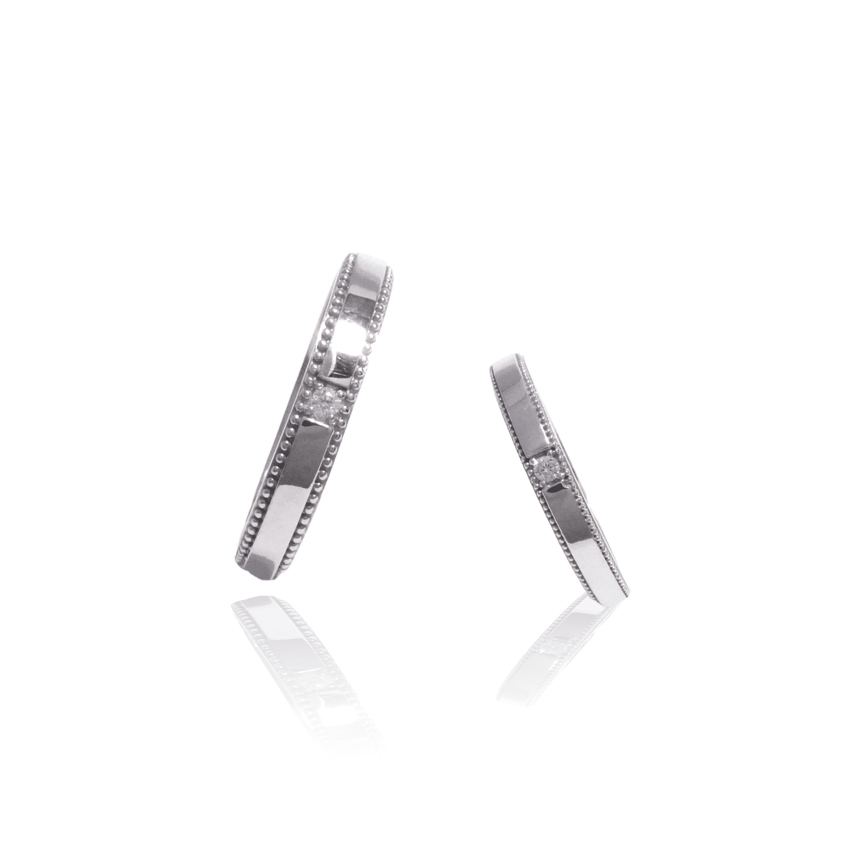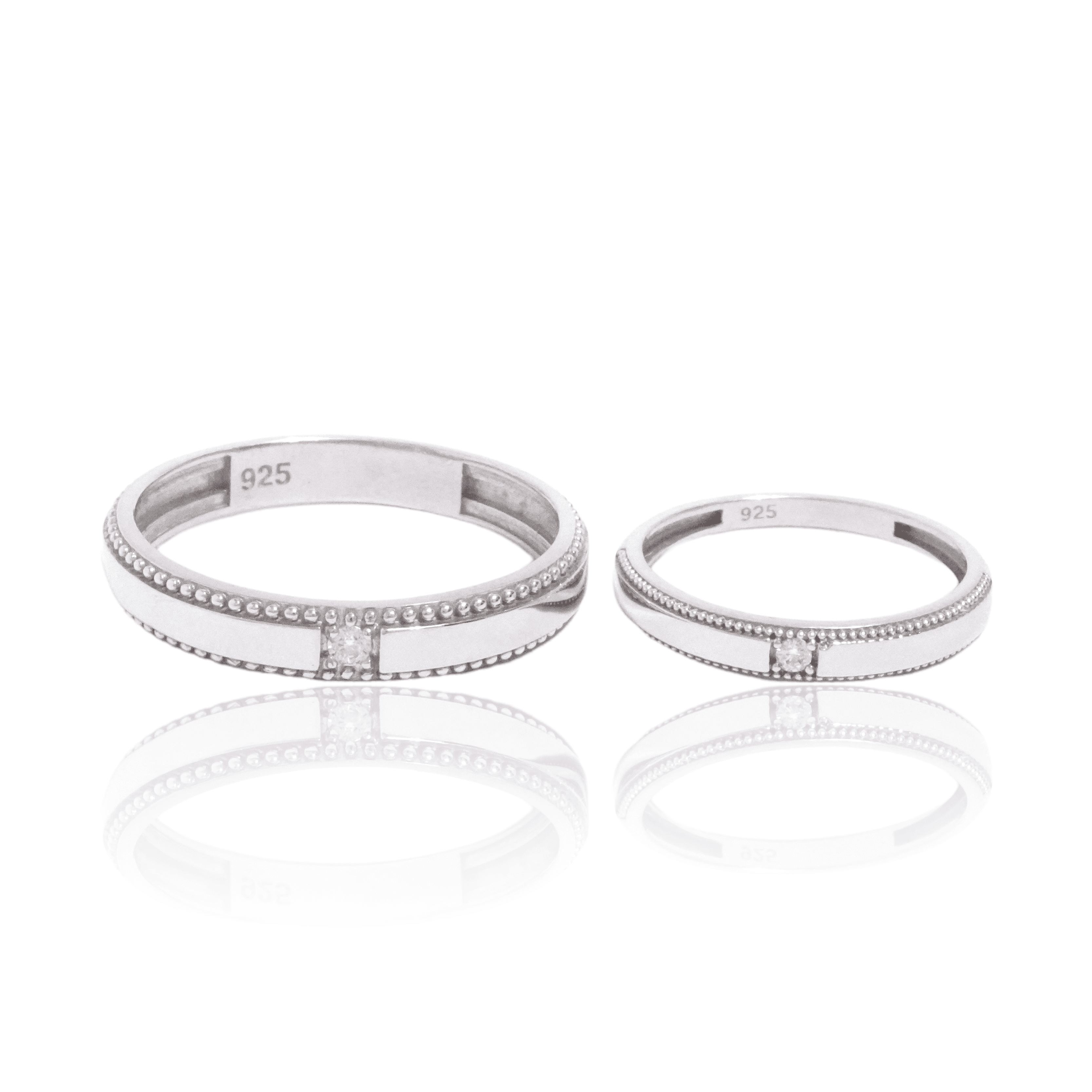 For Him: Classic Band Ring with Cubic Zirconia in Silver (Ring on the Left)