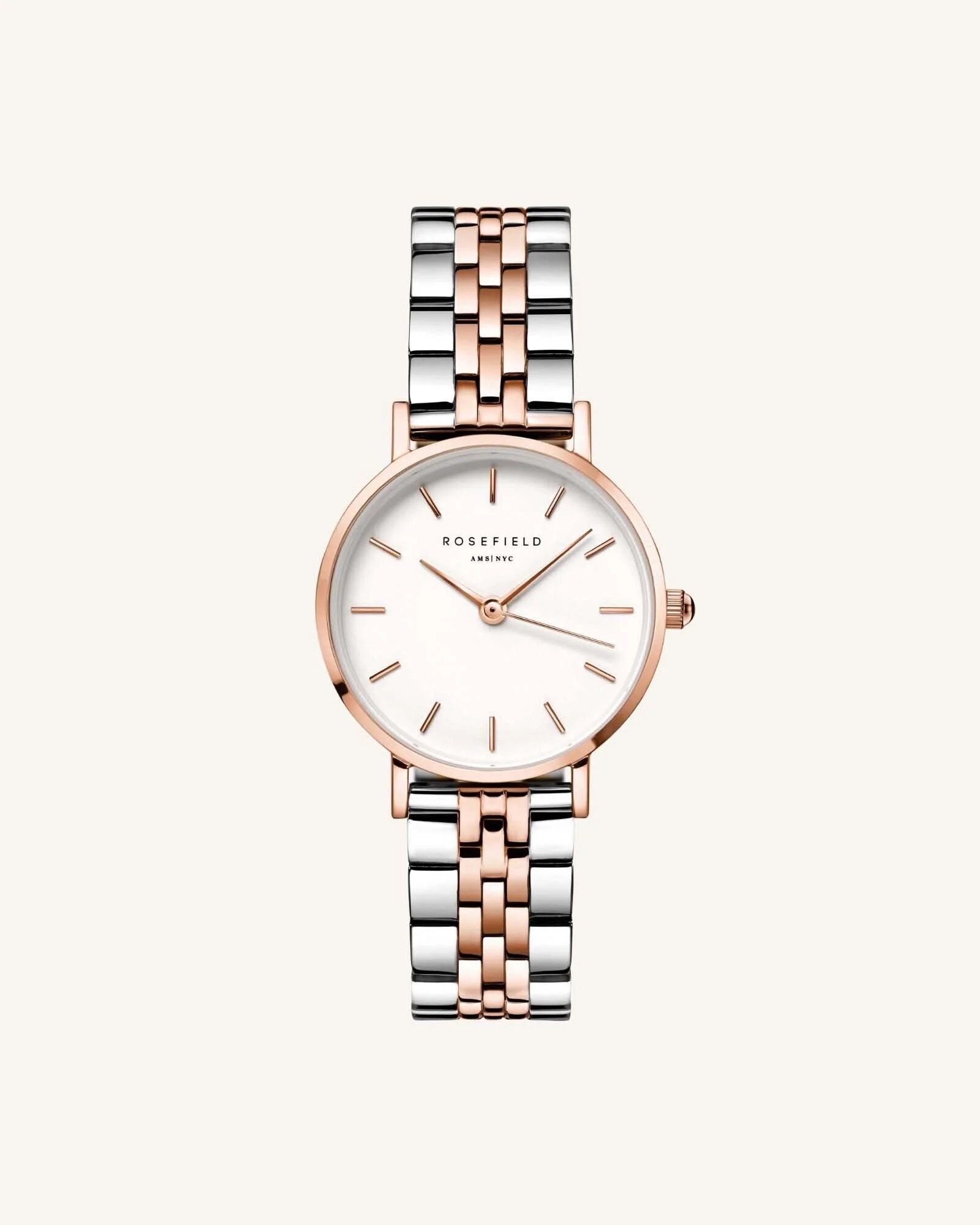 Strap material & color: Rhodium-plated stainless steel – Silver + Rose gold