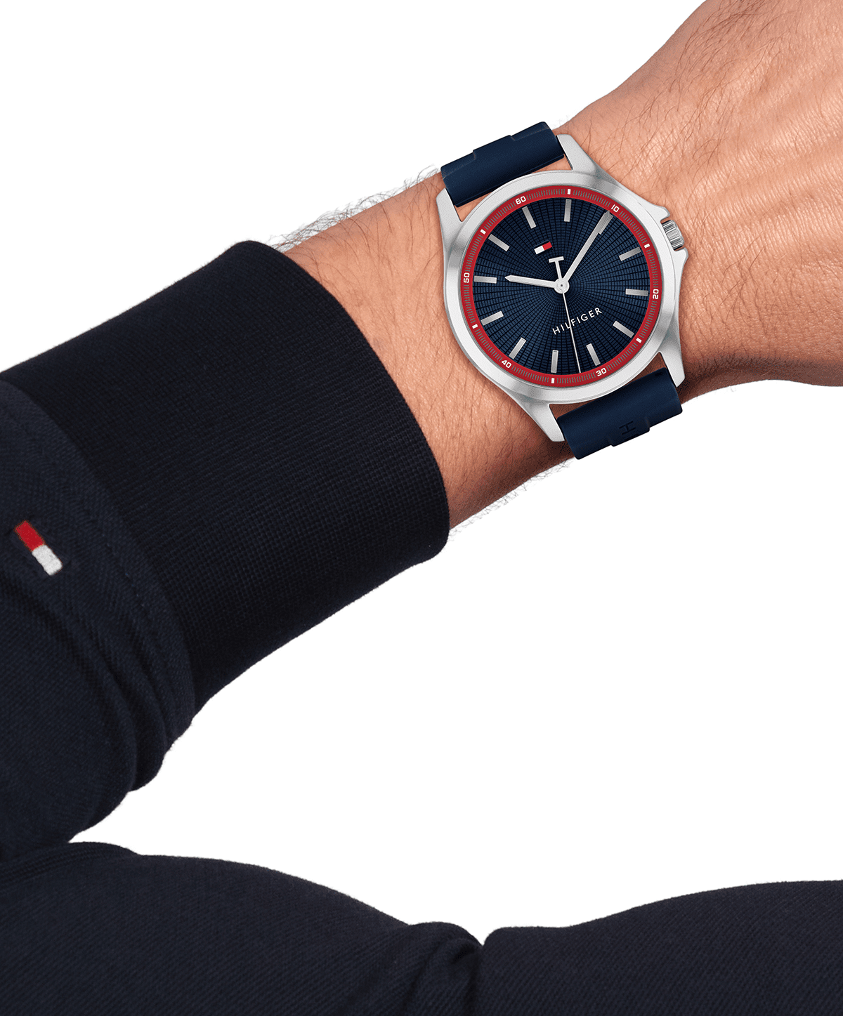 Discover the ultimate elevated essential for the modern man. With its textured sunray dial, stick indexes, and iconic ‘T’ sweep, this Tommy Hilfiger 43mm watch seamlessly blends versatility with sophistication. Its quartz 3-hand movement ensures precision and ease of wear, making it perfect for any occasion. Available with a comfortable silicone strap.