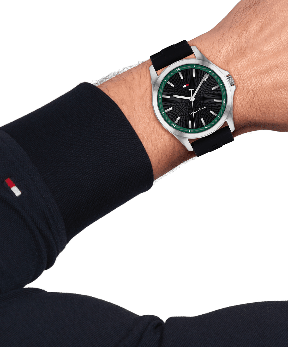 Discover the ultimate elevated essential for the modern man. With its textured sunray dial, stick indexes, and iconic ‘T’ sweep, this Tommy Hilfiger 43mm watch seamlessly blends versatility with sophistication. Its quartz 3-hand movement ensures precision and ease of wear, making it perfect for any occasion. Available with a comfortable silicone strap.